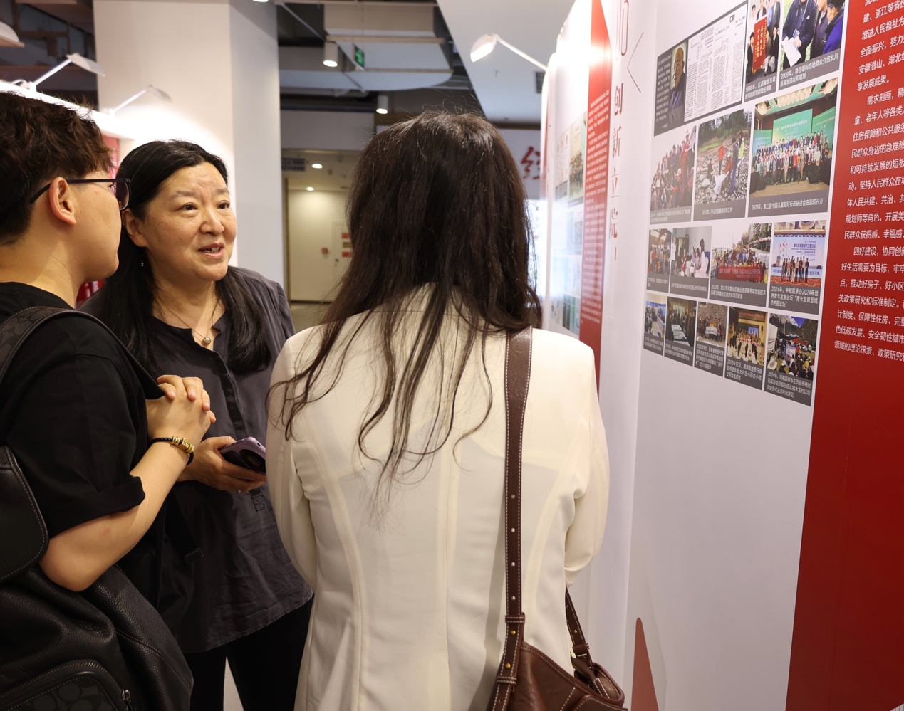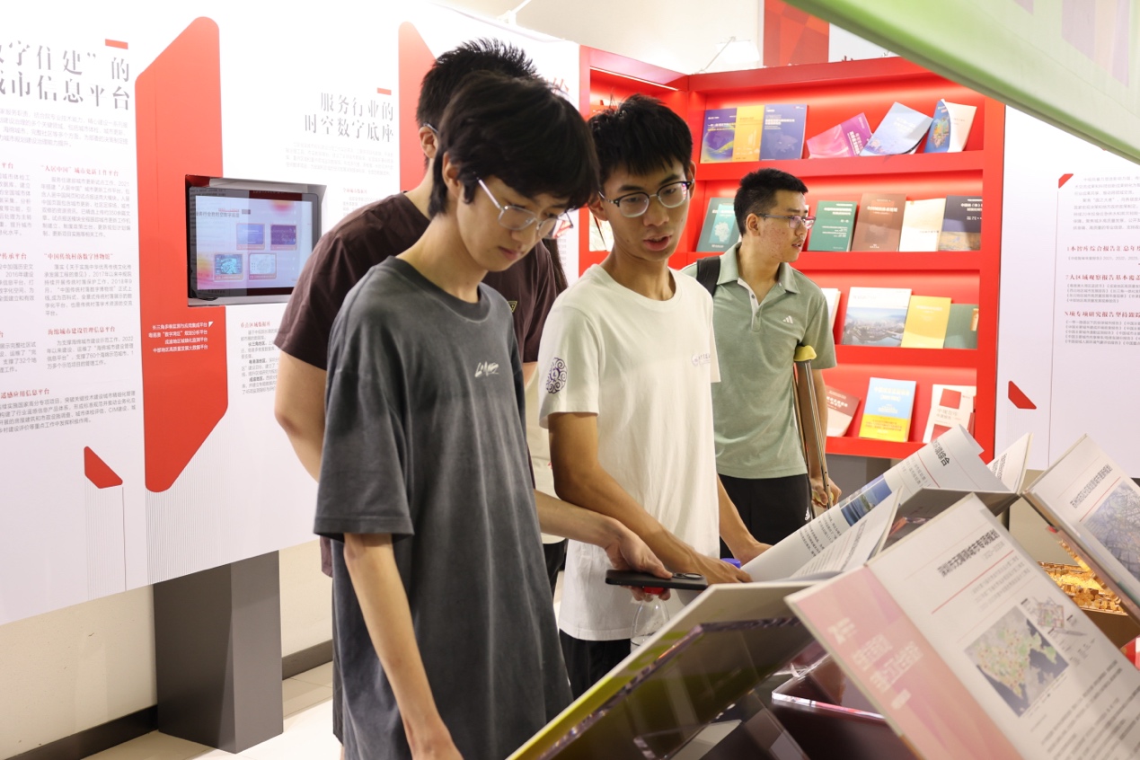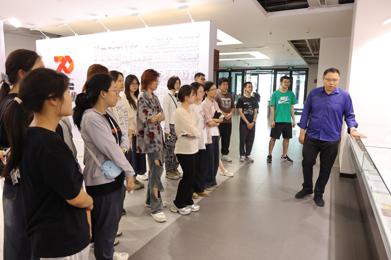 在中规院原总规划师张菁、人事教育处处长李志超的引导陪同下,师生们首先参观了位于主楼一层的“中规院70周年成果展”。展览系统梳理了中规院服务国家重大战略和城乡建设的光辉历程,陈列了大量珍贵的历史文件、规划图纸与模型。从宏观的区域规划到精深的历史文化名城保护方案,从前沿的CIM数字技术应用到鲜活的城市体检社区走访记录,每一项成果都凝聚着“规划国家队”的智慧与担当。同学们驻足细览,尤其是面对京津冀协同发展、雄安新区系列规划等的规划原件时,深刻体会到规划图纸背后承载的千钧重任与家国情怀。