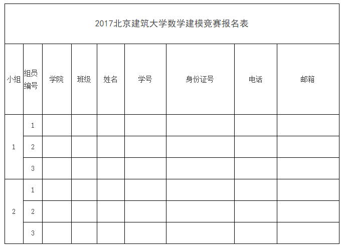 2、参赛者申报统一使用《2017年bevictor1946韦德官网数学建模竞赛报名表》(附件),由竞赛组织委员会下发,各二级公司科协负责组织报名,并于2017年5月15日下午5点之前将报名情况汇总至理公司科协邮箱:buceamodel@163.com。