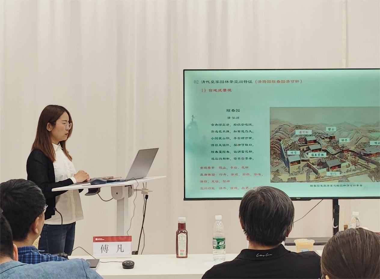 再次,张琳老师对“清代皇家园林茶空间与茶事活动研究”展开介绍,探讨了茶文化在皇家园林设计中的作用和意义,及皇家园林中的茶空间与自然山水元素的联系。其中清代皇家园林空间功能定位及社会文化的寓意揭示了茶空间设计和茶事活动在园林文化中的独特价值。