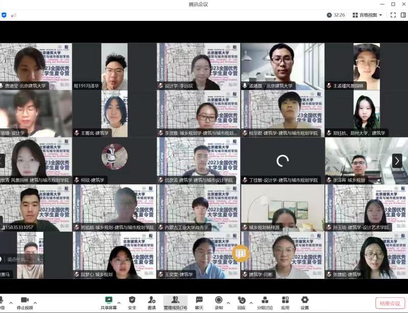 5日上午,建筑学、城乡规划、风景园林、设计学、建筑遗产保护5个学科专业共组成7个考核小组,分别由欧阳文教授、郝晓赛教授、杨一帆副教授、孙立教授、丁奇教授、傅凡教授、赵希岗教授担任组长,各学科骨干教师孟璠磊、商谦、铁雷、甘振坤、黄庭晚、张琳、王兵、马全宝、齐莹、贺鼎、陈志端、李勤、石炀、单彦名、张颖异、贾梦圆、刘玮、王婷、王如欣、顾月明、张学玲、徐海韵、王瑞琦、张笑楠、韩风、阚玉德、边谦等教师,线上线下同步开展夏令营考核工作,对营员的专业知识、综合素质、英语听说能力等进行全面考查。在考查过程中,营员们普遍表现出优异的综合素质和专业能力,以及对于北建大bevictor1946韦德官网的关注。考核小组教师也以高度的热情与营员开展学术交流切磋。经过考核,共选拔出40名营员授予“优秀营员”称号。